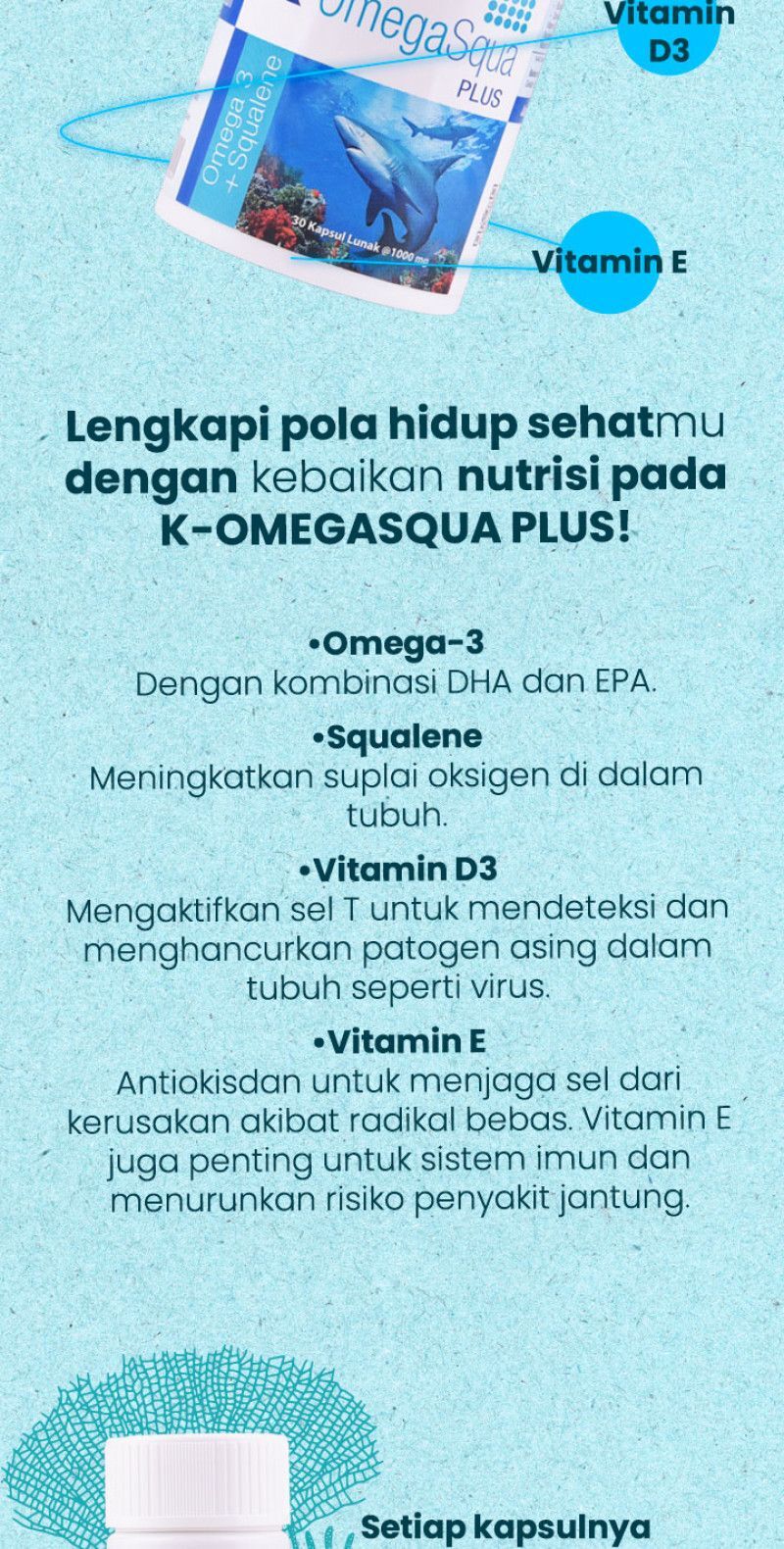 – Berasal dari ikan hiu Aizame, yang mampu membantu meningkatkan suplai oksigen di dalam tubuh.
