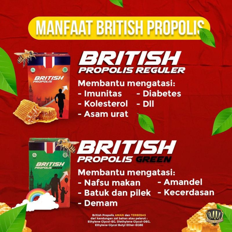 Adalah sebuah produk kesehatan yang terbuat dari madu asli langsung dari lebah yang khasiatnya khusus untuk menjaga daya tahan tubuh. British Propolis adalah Produk Premium yang berasal dari Propolis inggris. Dikemas dalam kemasan praktis botol kaca ukuran 6 ml. British Propolis mempunyai manfaat yang luar biasa untuk kesehatan dan pengobatan berbagai penyakit. karena British Propolis merupakan produk Kesehatan Premium 100% Alami, Aman, dan 100% Halal. Sebuah Tren Herbal Terdahsyat yang Kini Hadir untuk Menjawab Kebutuhan Kesehatan Anda.