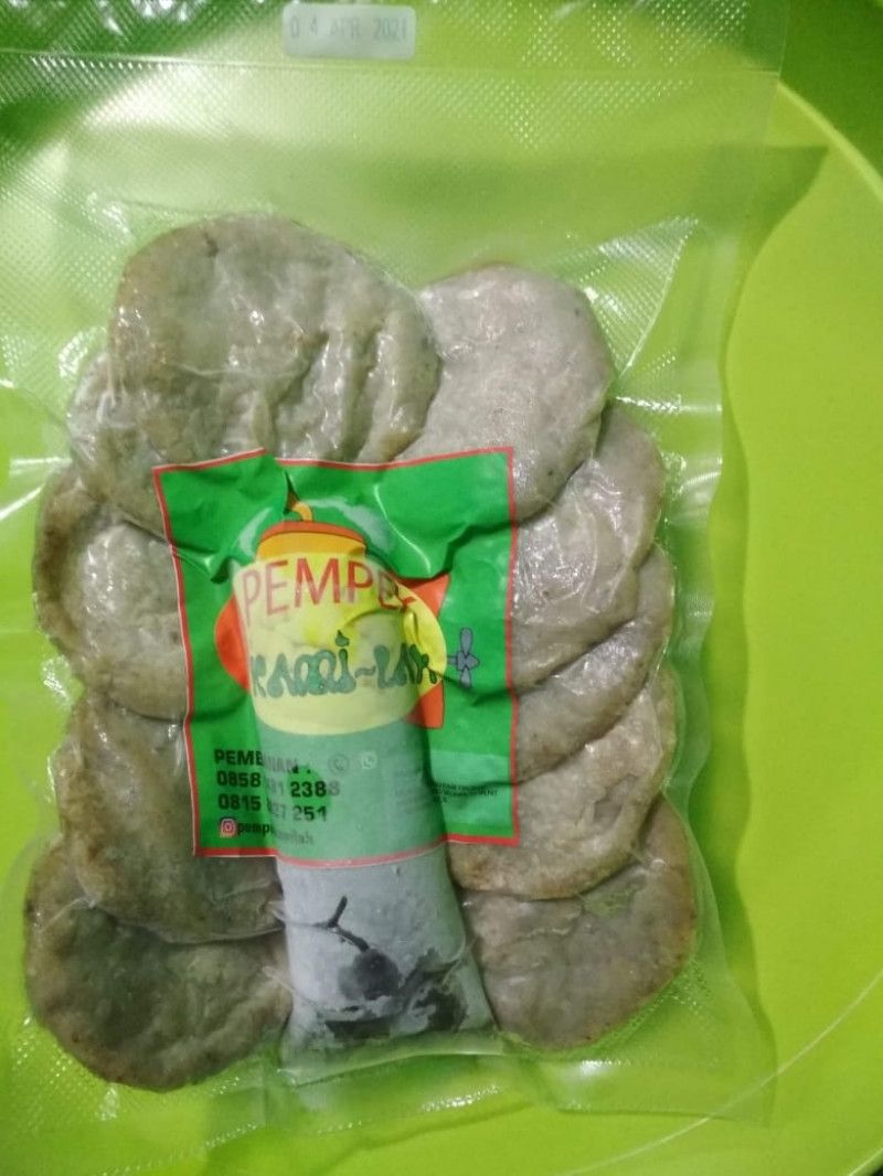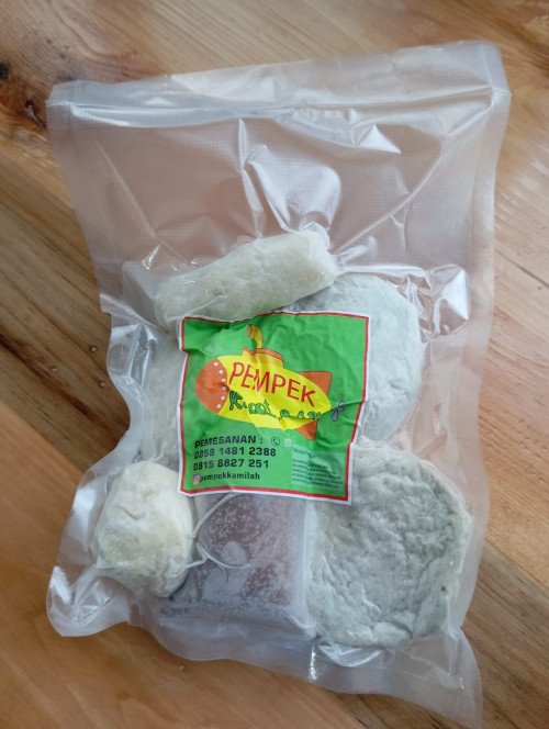 10 Pcs Aneka Pempek Kami-Lah Beku, terdiri dari 2 Pcs Pempek Isi Telur, 2 Pcs Pempek Lenjer, 2 Pcs Pempek Adaan dan 4 Pcs Pempek Kulit