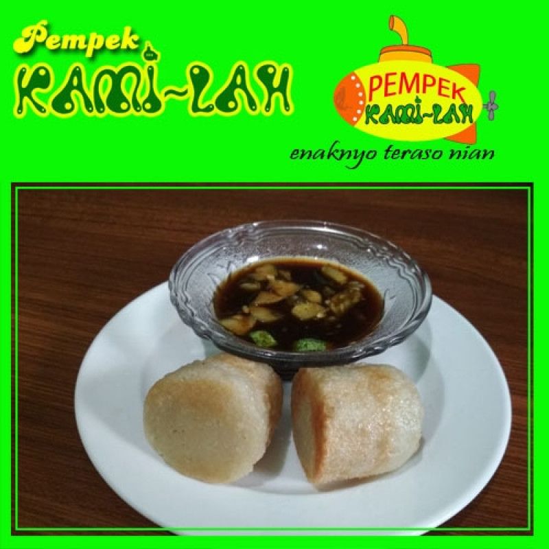 1 Pcs Pempek Dos Tanpa Ikan isi Tahu disajikan denga cuko khas dari Pempek Kami-Lah
