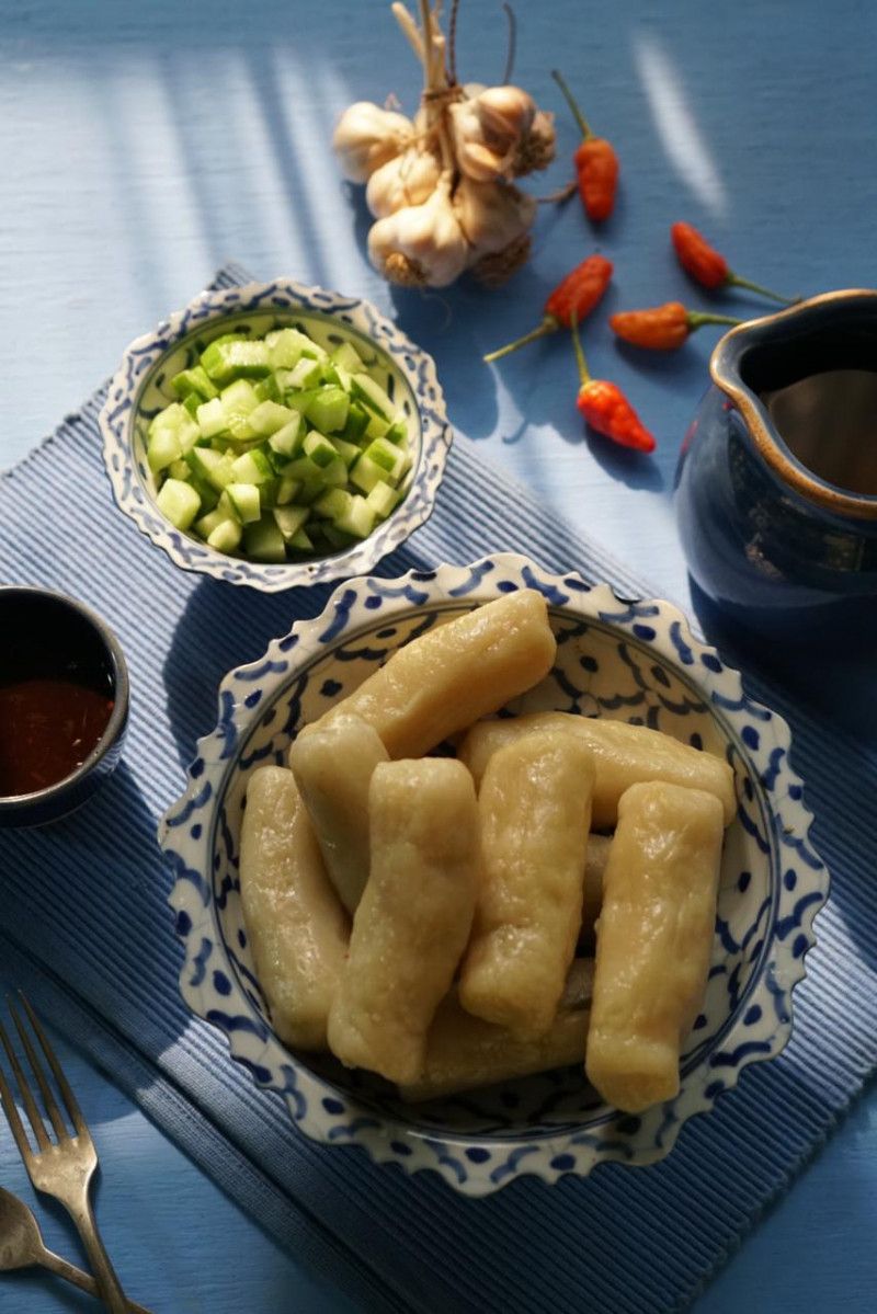 1 Porsi Pempek Lenggang dari Pempek Kami-Lah dibuat dari daging ikan pilihan digiling halus, dicampur tepung sagu berkualitas tinggi, telur, bawang putih serta garam, dipotong kecil lalu dicampur dengan satu buah telur