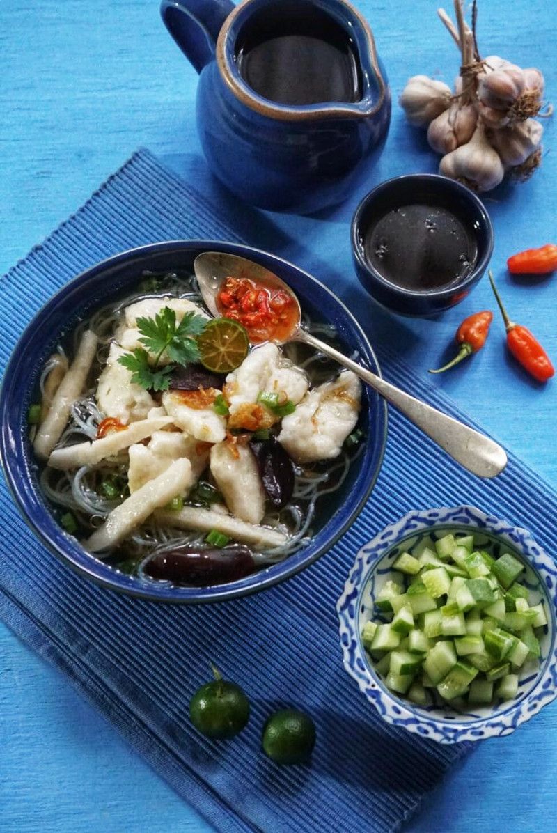 1 Porsi Tekwan Ikan Panas dari Pempek Kami-Lah disajikan hangat dengan tambahan bengkoang iris dan jamur kuping serta soun dan sambal juga cuko