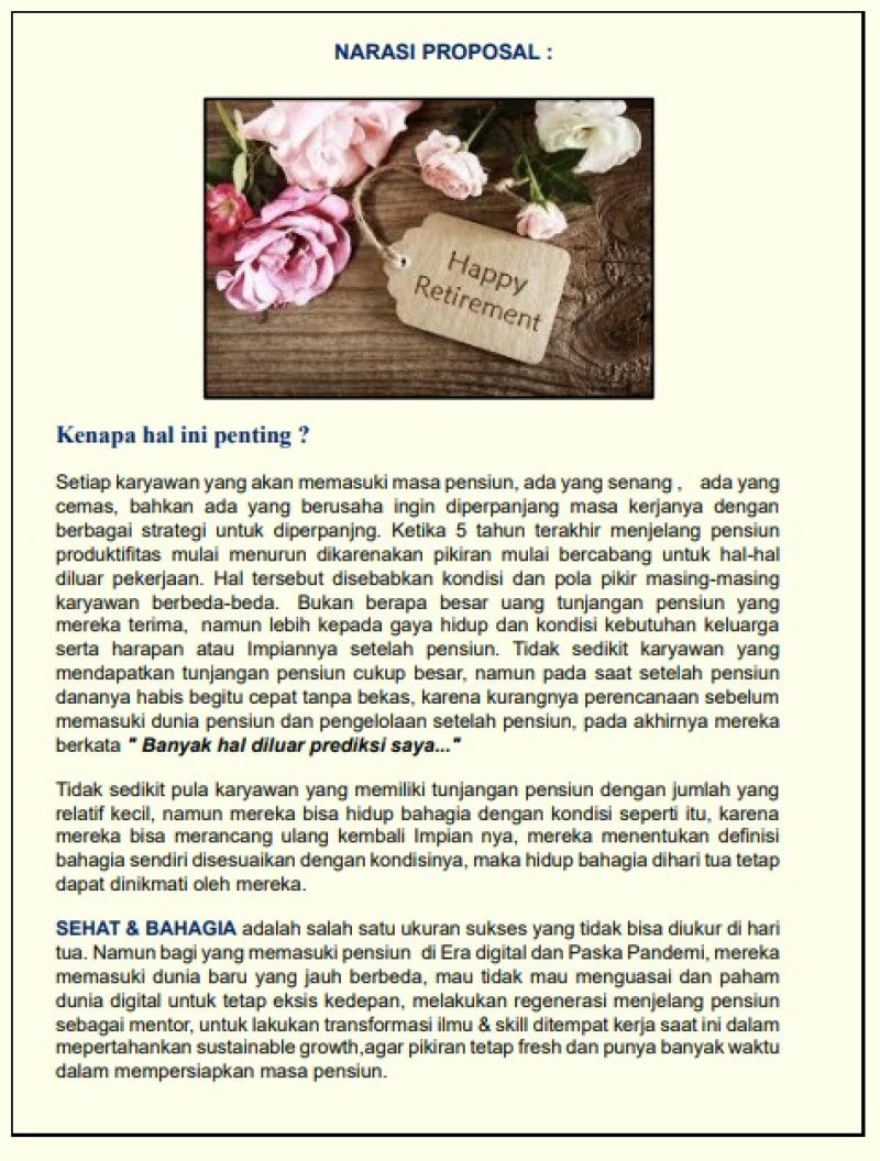 CORPORATE IN-HOUSE TRAINING --> DESIGNING HAPPY RETIREMENT --> TO APPRECIATE AND SECURE OF SENIOR EMPLOYEES WHO WORK FOR A LONG TIME CONTRIBUTION.