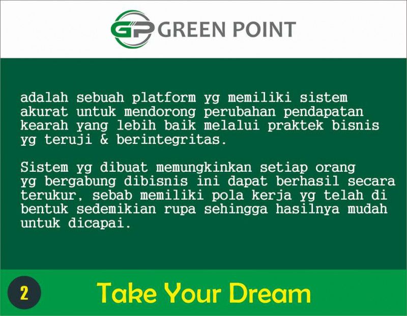 Untuk mendapatkan GRATIS WEBSITE Landing Page jika daftar via CS untuk Pribadi Anda dari saya dlm mengembangkan bisnis Green Point anda utk dapat cuan / penghasilan tambahan