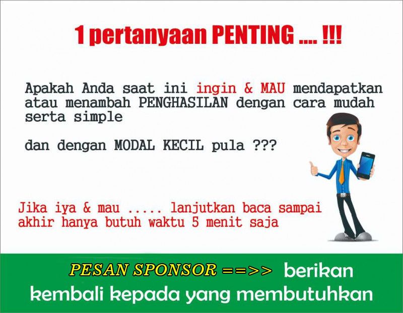 SEMUA ORANG ( dari bayi sd orang sdh tua skalipun ) bisa SUKSES di bisnis ini. Bisnis yg NGGAK PERLU Skill khusus. Gabung Segera, ikuti SISTEM nya & buktikan .... !!!! .... Apapun profesi dan latar belakangnya, TANPA REKRUT & BUKAN MLM.