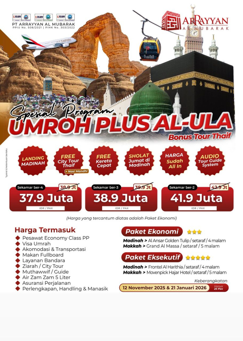 Penyelenggara Umrah dan Haji Resmi Terdaftar di Kemenag RI dengan Ijin PPIU No. 508 Tahun 2021 dan Ijin PIHK No. 303 Tahun 2022 serta terakreditasi "A" oleh Lembaga Akreditasi Nasional.