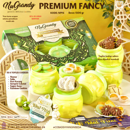 Paket 6 Toples Persegi Enam Rata Bawah isi Nastar, Kue Putri Salju, Kue Kacang, Kue Susu, Kue Coklat dan Kue Bangkit Susu